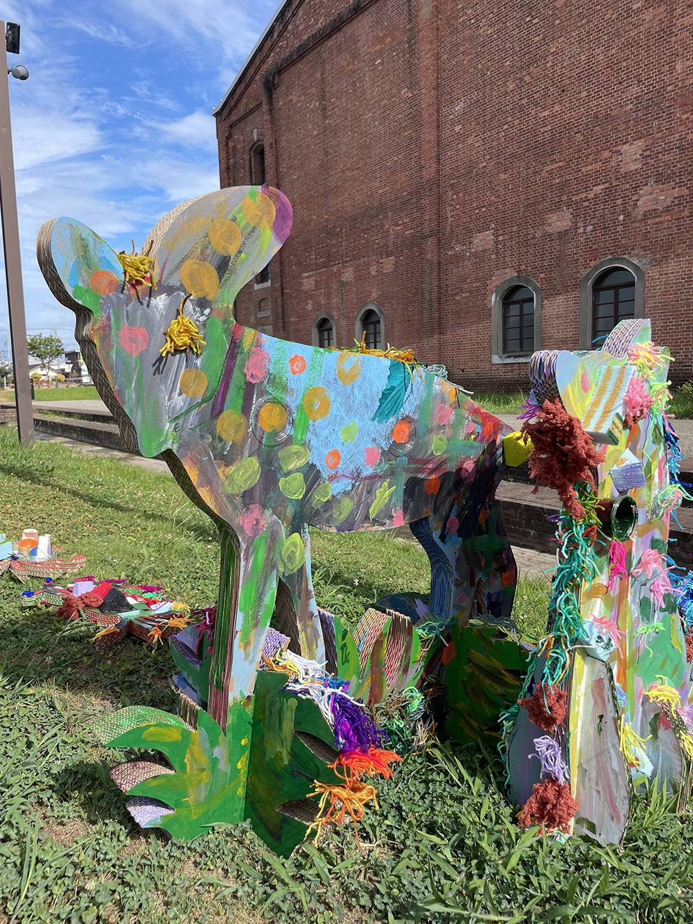 半田市内の児童発達支援施設や、就労支援施設、お子様などと共に南吉童話の一場面を表現した作品を半田赤レンガ建物の空間いっぱいに展示しました。