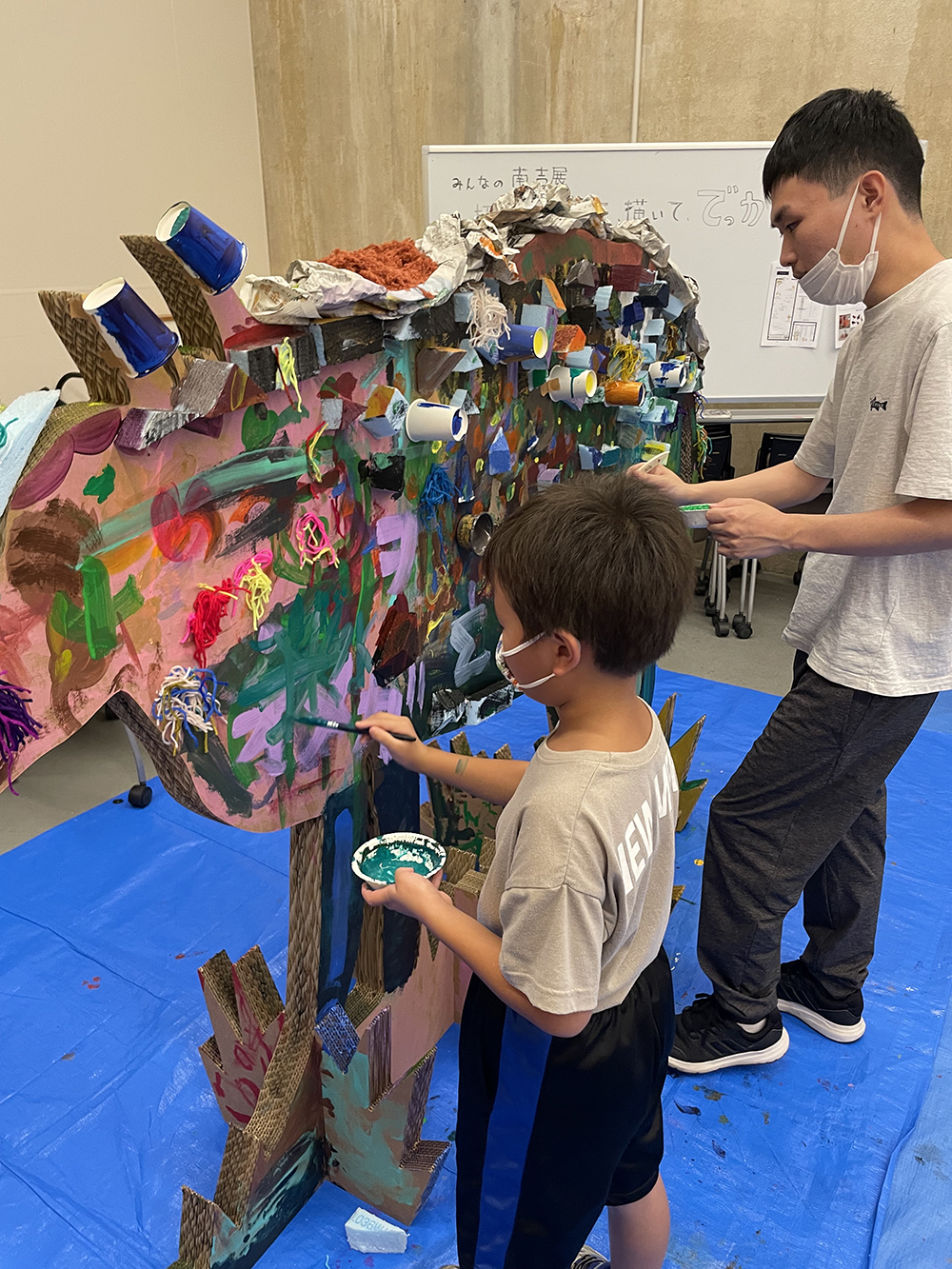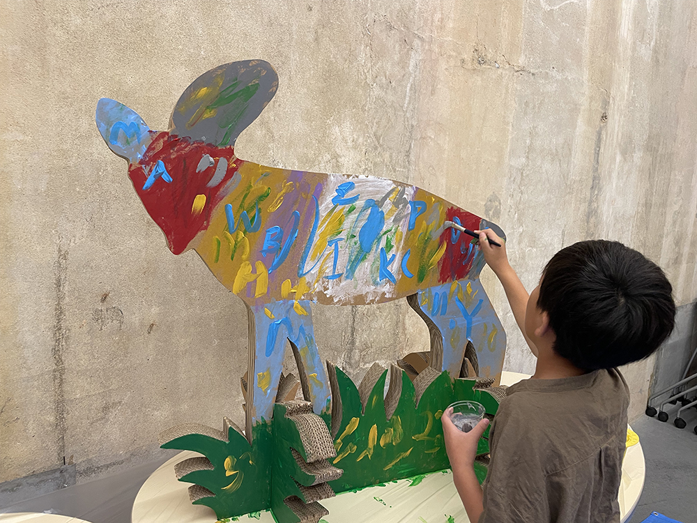 新美南吉の物語に登場する いきものたちを大きなダンボールのキャンバスにみんなで描きました。