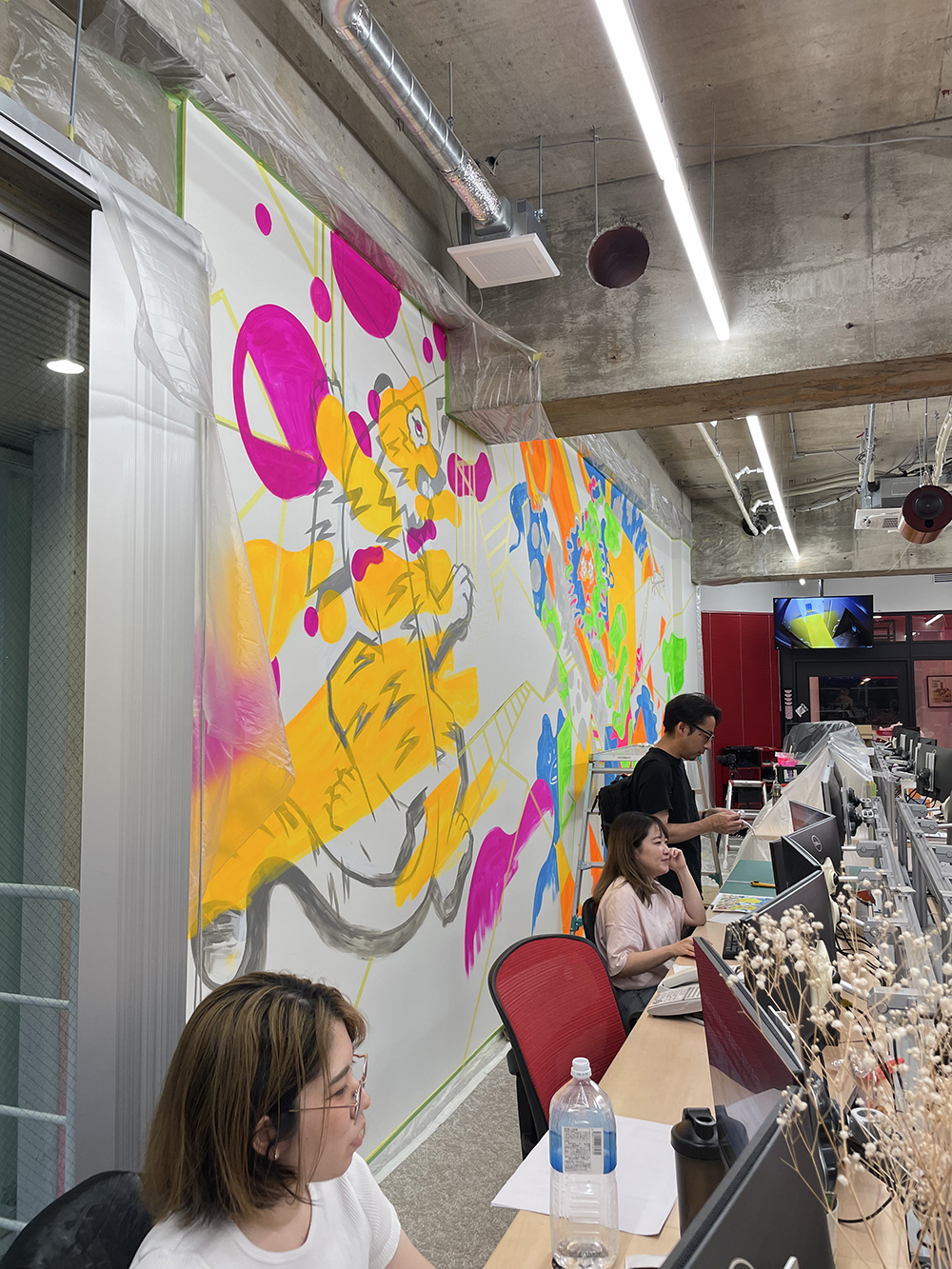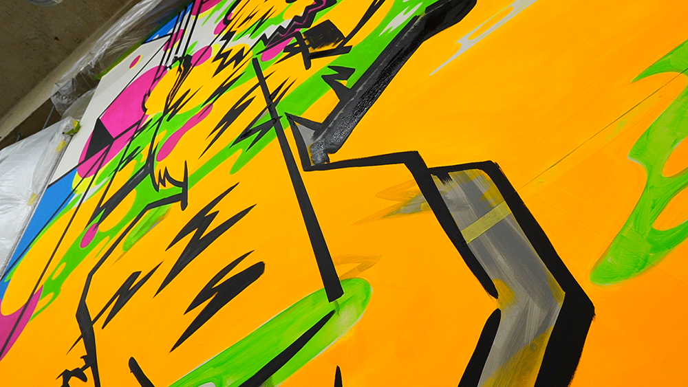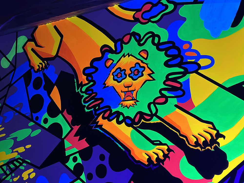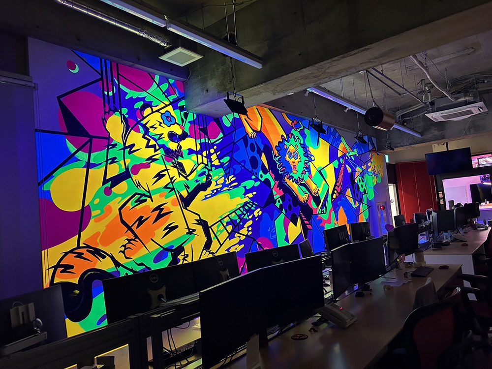 クライアントには打ち合わせの時にインパクトを出したい要望で蛍光塗料でも光る塗料にする。