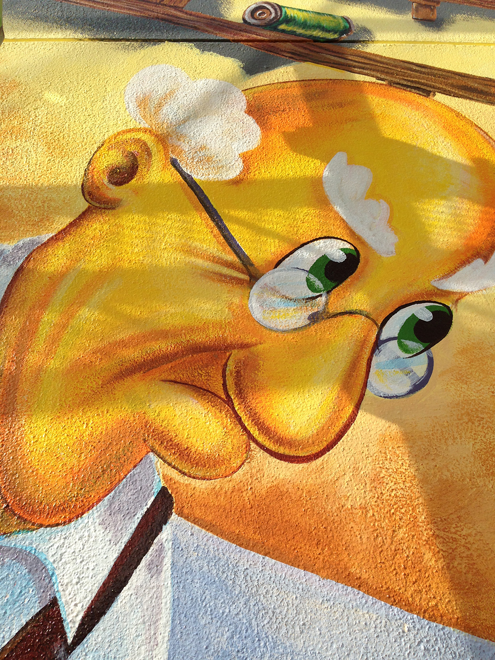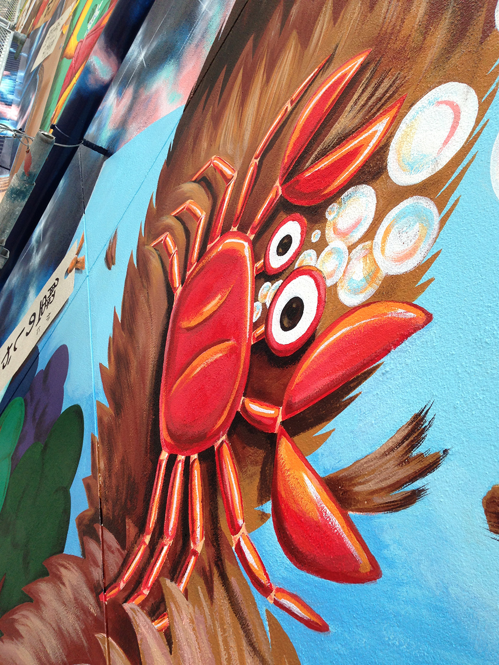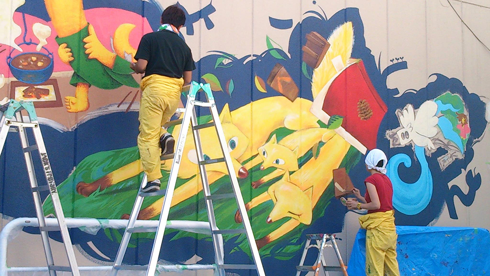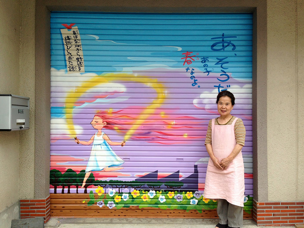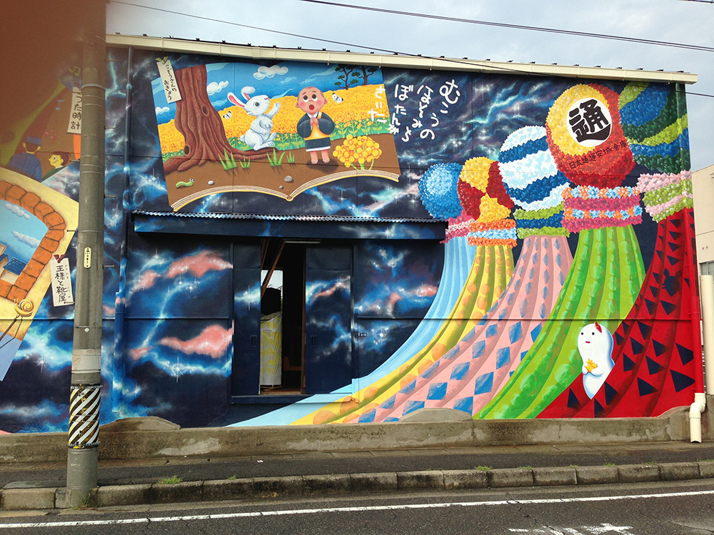 ┗ この倉庫の中には安城市の七夕祭りの飾りが仕舞われている。老朽化で夜道が怖い雰囲気を一掃するような楽しい絵にしました